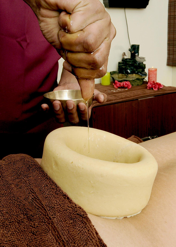 Kati Basti is a procedure of applying heat to the sacral or lumbar region by retaining warm medicated oils (similar to janu basti), this warm medicated oil is absorbed through the skin and muscles and helps in relieving pain and spasm.