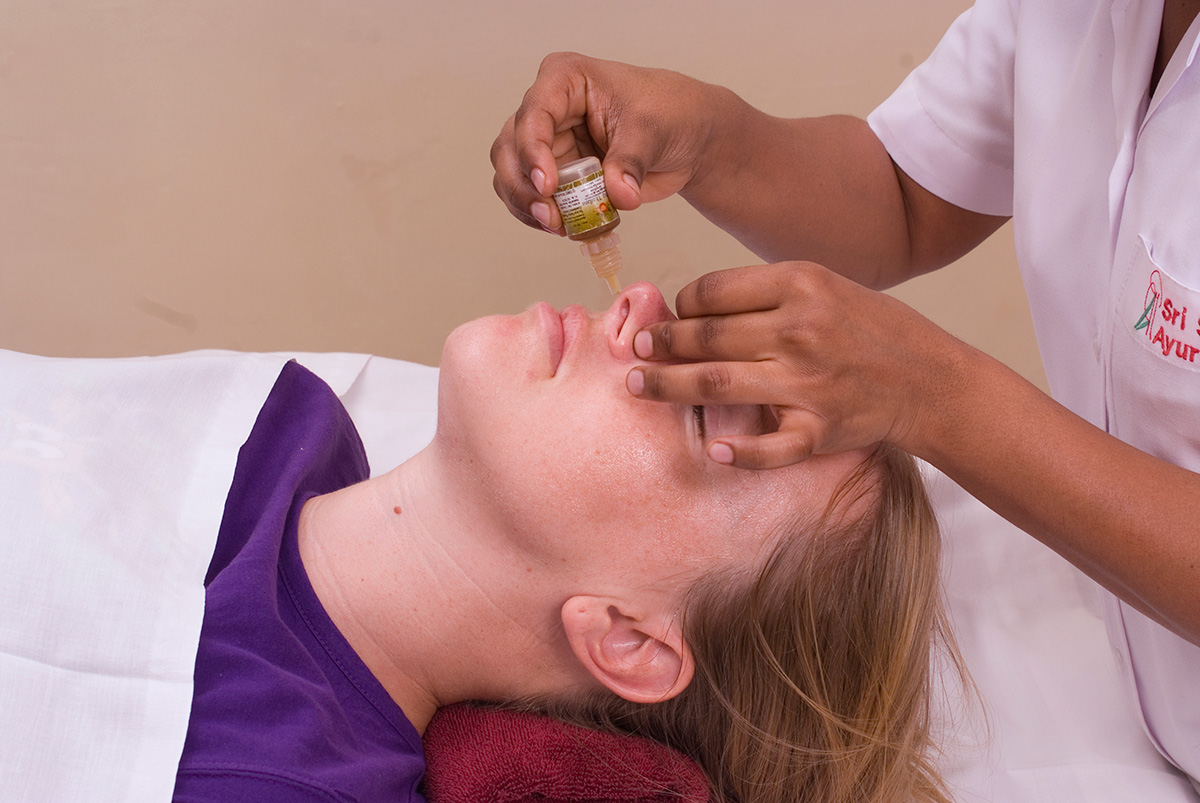 Nasyam :- Nasal administration of medicated oils. Very effective for treatment of allergic sinusitis, Rhinitis, Migraine headache, Facial paralysis etc.
